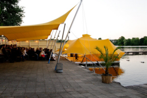 auf der schwimmenden Bühne im Naturbad Falkenwiese http://www.naturbad-falkenwiese.info