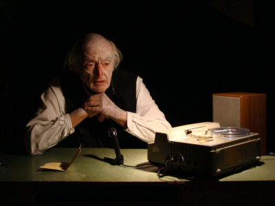 "Eines Abends, spät in der Zukunft. Krapps Bude. An einem Tisch sitzt ein zermürbter alter Mann: Krapp."